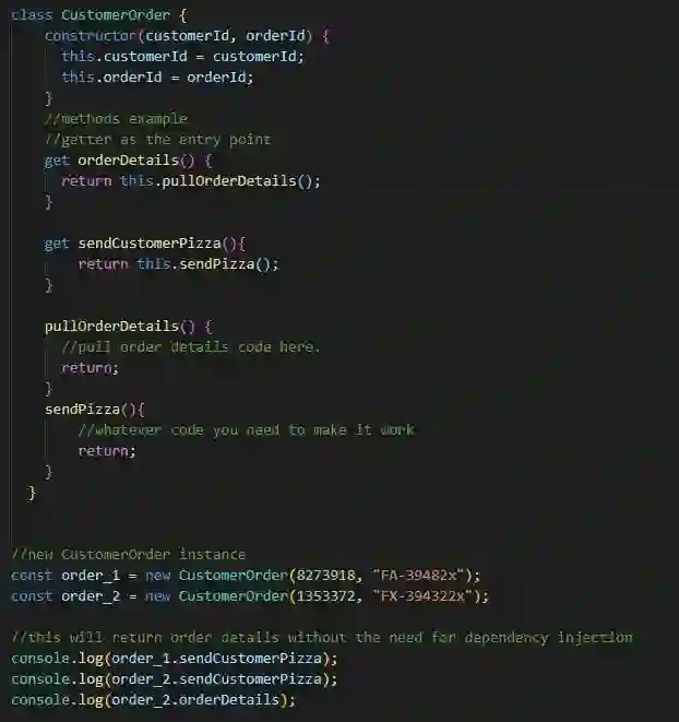 上图中的构造函数(constructor )用来设置变量。Getter 和 Setter 方法是某些操作的入口。这些函数调用了什么、怎样调用的都被隐藏了。每次创建新对象时,都会“克隆”整个类及其方法,然后创建者就能访问该对象了,如此一来变更的范围就明确了,而且我们知道,任何对于类及其方法的更改都是一致的。