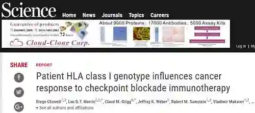 这篇于12月7日发表在Science杂志上的论文证实,人类白细胞抗原(human leukocyte antigen,HLA)基因越多样、变异越多的癌症患者能够更好的响应免疫疗法。