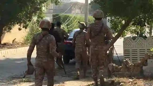 中国驻卡拉奇总领事馆外的巴基斯坦保安部队和警察