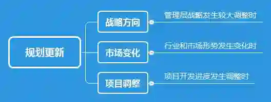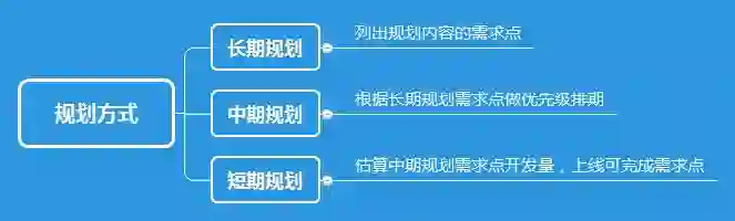 产品规划并非静态,而是随着公司战略、市场变化等不断迭代,因此需要在调整时做相应更新。通过将规划进行分解,主要包括以下内容:规划时间、规划内容、规划方式和规划更新。