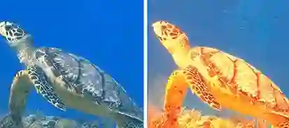 左-人类的视觉,右-海龟的视觉
