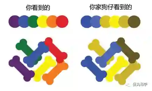 说到了猫咪,自然要说到狗子。小编经常听到一种说法——狗子只能看到黑白的世界,其实狗子的世界并没有这么悲惨,它虽然和猫子一样是个「色盲」,但还是能看到颜色的。