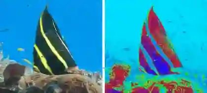 左-人类的视觉,右-砗磲蛤的视觉