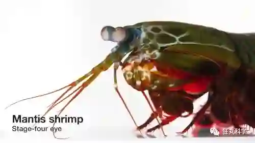 我们前面说过人类拥有的是三色视觉,那么十六色视觉是怎么样的呢?一类叫做Mantis Shrimps的虾就拥有12~16色视觉。也许你比较熟悉皮皮虾这个名字,皮皮虾就是Mantis Shrimps中的一种虾类。