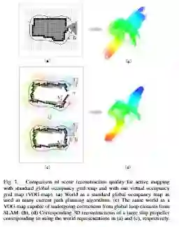 本文提出了一种基于局部子映射构造全局可变形虚拟占用网格地图(VOG-map)的映射方法。这种表示允许姿态图SLAM系统通过回环检测来校正全局累积漂移,同时为了路径规划保持自由空间信息。我们演示了这种表示用于实现水下SLAM系统,其中机器人主动规划路径以产生精确的3D场景重建。在仿真实验和真实世界实验下我们评估了算法性能。我们的工作进一步增强了移动机器人主动绘制和探索非结构化三维环境的能力。