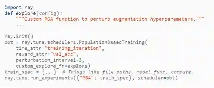 同时,我们将讨论我们最新发表的论文「Population Based Augmentation: Efficient Learning of Augmentation Policy Schedules」(论文下载地址:https://arxiv.org/abs/1905.05393.pdf)中 PBA 算法的实验结果,然后说明如何利用「Tune」(https://ray.readthedocs.io/en/latest/tune.html)框架在新数据集上运行 PBA 算法(https://github.com/arcelien/pba)。