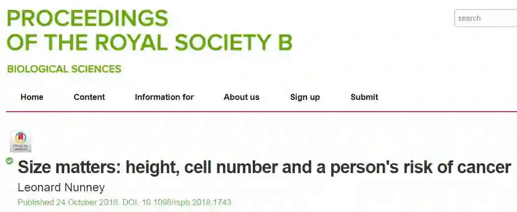 在这篇论文中,进化生物学家Leonard Nunney将身高与癌症风险进行了比较,并考虑了人体细胞的总数量。