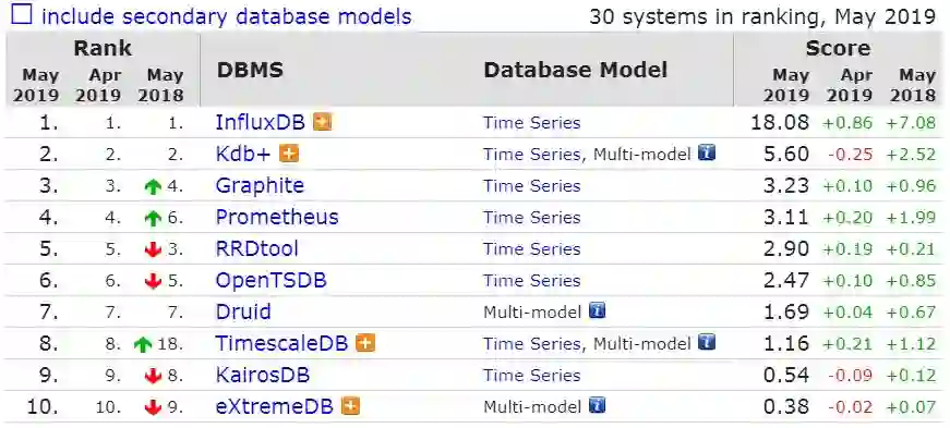 时序数据库前 10 名如下: