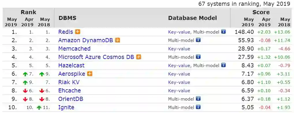Key-Value 数据库前 10 名如下:
