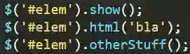 jQuery 允许“链式”插件的方法调用,以减轻反复查询 DOM 并创建多个 jQuery 对象的过程。