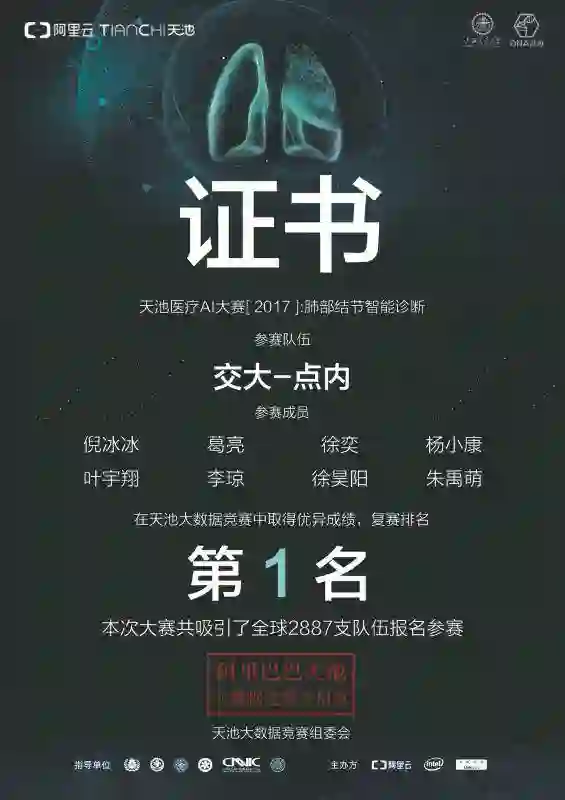 这一算法在阿里云与英特尔联合举办的天池医疗 AI 大赛中大获全胜,以 0.732 的成绩从两千多组强劲队伍中脱颖而出,在比赛最为重要的复赛赛程中排名第一。