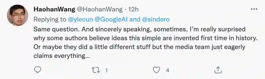 对于LeCun的这种疑问,即将成为UIUC助理教授的Haohan Wang表示赞同。他表示,有时真的惊讶为什么有些作者认为这么简单的想法是历史首创。或许他们做出了一些与众不同的事情,但宣传团队却迫不及待地出来声称一切……
