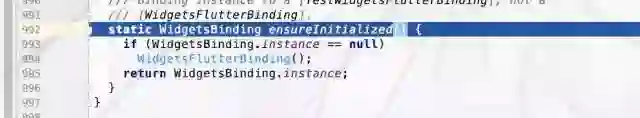 接下来很显然小蓝要走入 WidgetsBinding 的 ensureInitialized 方法