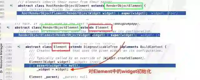 这里 RenderObjectToWidgetElement 将该 Widget 一路供奉给父类构造,并在 Element 中被笑纳。可以看出在 RenderObjectToWidgetElement 元素中获取 get widget 是通过 super 拿来的 Widget。