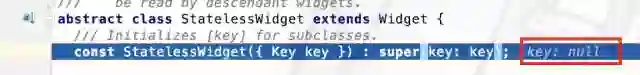 当到 Widget 时,在其构造方法中对成员变量 key 进行复制,很显然由于我们 Text 没有传 Key,所以为 null: