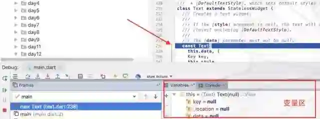 这是笔者进入 Flutter 世界中的第一个疑问。Text 也是 Widget,为什么直接会崩溃? 从这个问题出发,一起来场 debug 之旅吧。(注意: 本文不注重讲知识点,重在 debug 的操作)