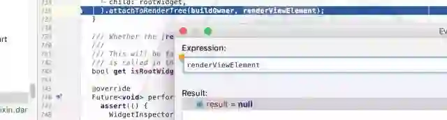 然后小蓝会该对象的走 attachToRenderTree 方法,等一下,这两个入参是什么? 当你对入参有所疑惑,或想要查看当前表达式的的结果,那么另一个小伙伴就会很有用,她就是依依--计算表达式。