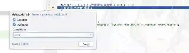 如果有一千万次循环,一步一步还不得地老天荒,这时候循环调试可以帮到你。你可以指定一个条件,那么下次循环就会变成此条件。