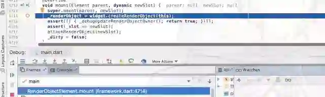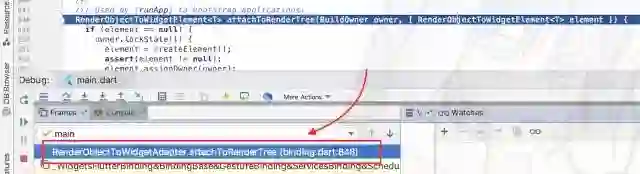 所以都会进入。如果一直小蓝,获取的个个细节都会被一点点走过,如果不想看这么多,小折或小过就行了。这时候会到达 attachToRenderTree,这里提一下,下面的 Frames 里可以看到当前执行处所在的位置,让你不至于连在哪都不知道。