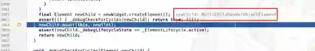 再进行小蓝,便会执行元素装载的方法,这也是 Flutter 中非常重要的一环。