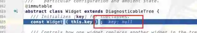 同理: StatelessWidget 也先执行 super(key:key),镜头转到: Widget 构造