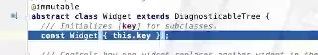 接下来小蓝往哪走? 要知道,一个类的初始化,首先要执行其父类的构造函数。这里 Widget 继承自 DiagnosticableTree,必然会先执行 DiagnosticableTree 的构造方法