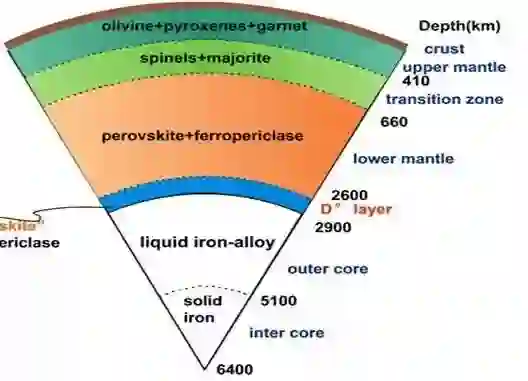 图2. 地球截面展示了各地幔层的主要矿物结构形态。