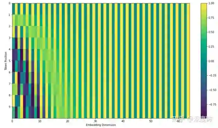 如此编码的优点是能够扩展到未知的序列长度,例如前向时候有特别长的句子,其可视化如下: