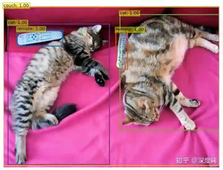 results = [{'scores': s, 'labels': l, 'boxes': b} for s, l, b in zip(scores, labels, boxes)]既然训练时候对6个解码器输出都进行了loss监督,那么在测试时候也可以考虑将6个解码器的分类和回归分支输出结果进行nms合并,稍微有点性能提升。