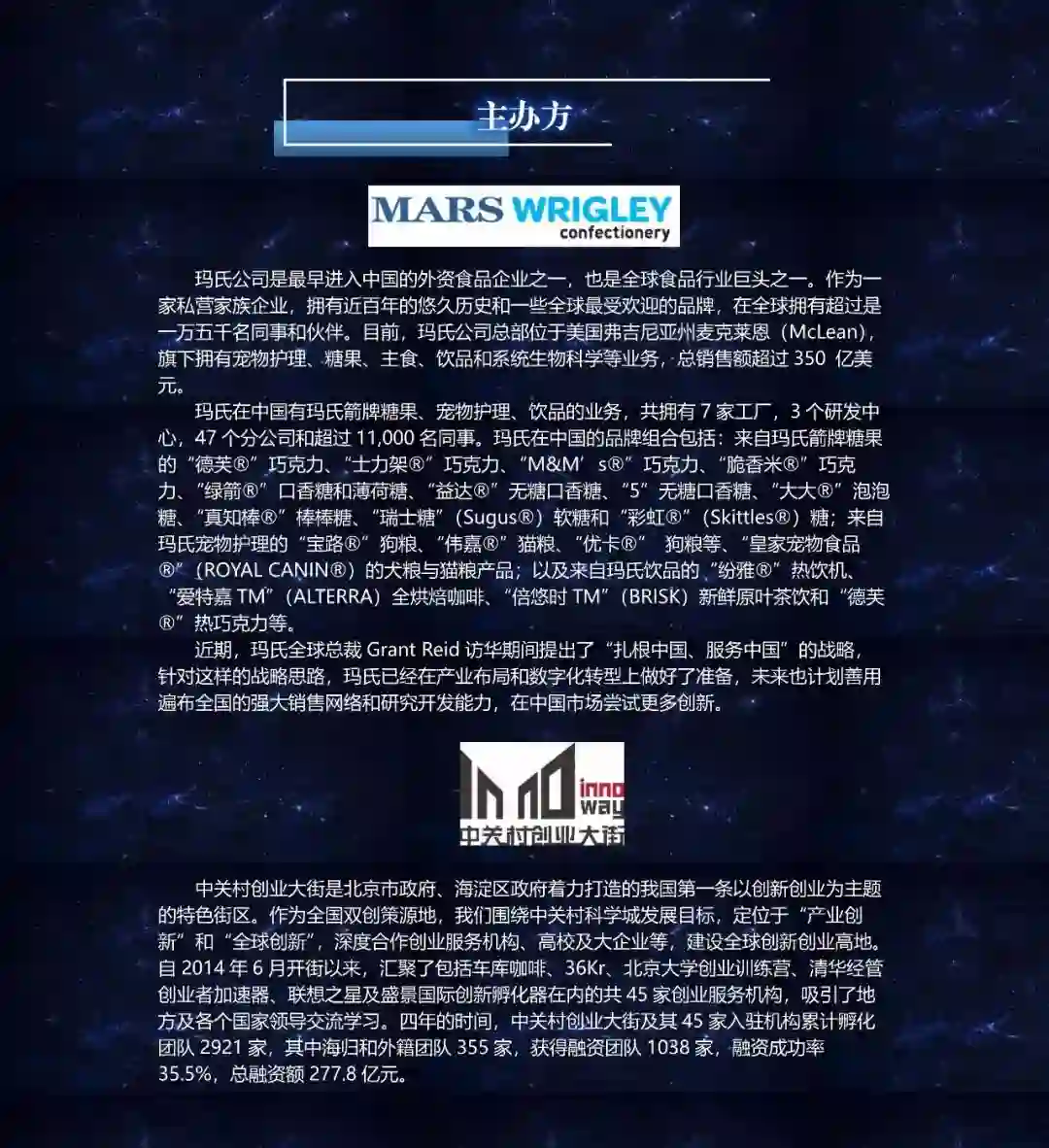 2018 年新零售的发展即将踏上另一个台阶,玛氏公司携手中关村创业大街一同为新零售变阵,聚合玛氏业务相关生态圈的各类优势资源,以开放共荣的心态邀请最有想法、最具创意的顶尖创业团队和人才,共同诊断业内疑难杂症,用颠覆的思维与创新的方案,对零售进行重新定义,打造全新业务模式及下一个创业风口。