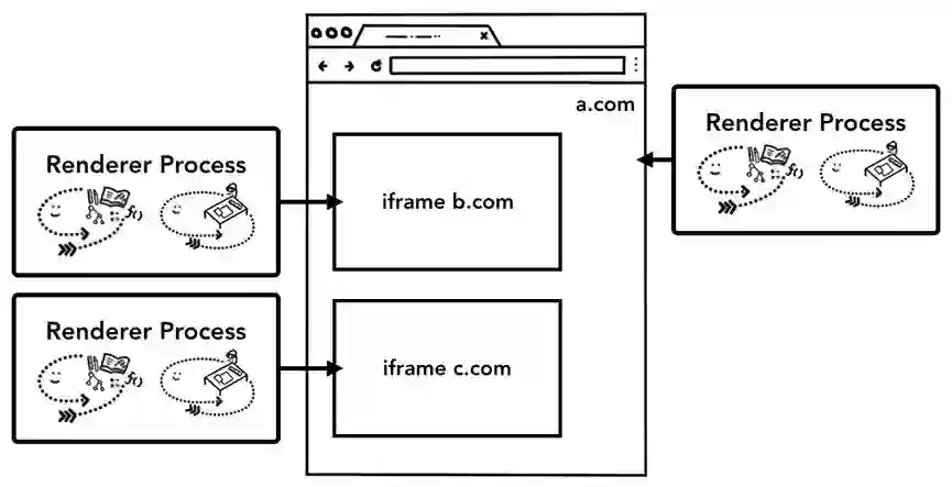 我们一直在讨论,每个选项卡有一个独立的渲染器进程,它允许跨站点 iframe 在单个渲染器进程中运行,并在不同站点之间共享内存空间。在同一个渲染器进程中运行 a.com和 b.com 似乎没问题。