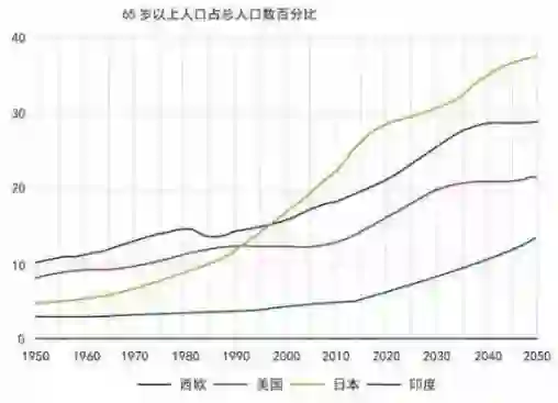老龄化人口从两个方面影响了服务机器人的发展。其一是劳动力市场的缩水,另外一个因素则是提供满足健康护理需要的解决方案的机遇。美国正处于未来20年发展趋势的入口:退休工人数量占当前劳动力数量的百分比将近翻倍,即从当前的每10个工人中有2个退休的状态演变为2030年的每10个工人中有4个退休的状态。在日本,这种情况则更加糟糕,快速增长的老龄化人口是日本提出发展机器人技术作为国家政策的主要诱因。