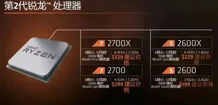 四款全新公布的第二代 AMD 锐龙处理器