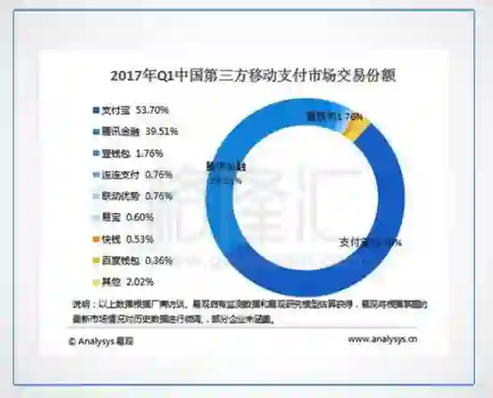 然而线下支付让腾讯的第三方支付突然崛起,到2017年第一季度,腾讯金融的市场份额上升到了近40%。