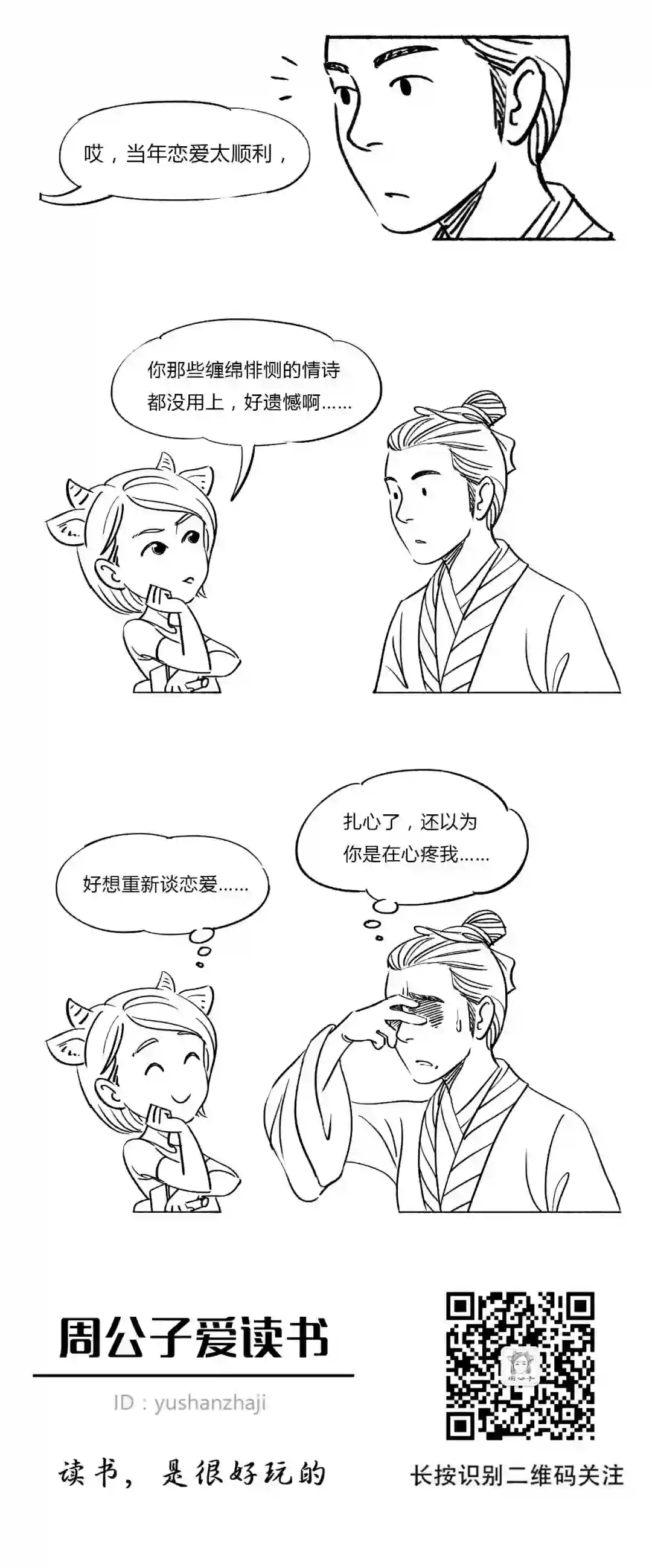 这可不得了,身份证,准考证可都在里面呢!李商隐深怕二货朋友不靠谱,耽误了考试,于是顾不得和柳枝姑娘的约会,急急忙忙追去长安了。
