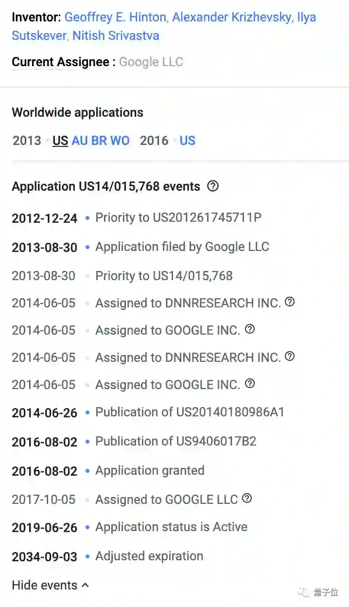 专利文件上填的发明者,也是这篇论文的各位作者,只不过申请者是谷歌: