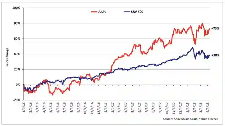 苹果近几年的股价与大盘对比