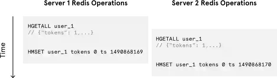 FUNCTION LIMIT_API_CALL(ip)current = LLEN(ip)IF current > 10 THENERROR "too many requests per second"ELSEIF EXISTS(ip) == FALSE #1MULTIRPUSH(ip,ip)EXPIRE(ip,1)EXECELSERPUSHX(ip,ip)ENDPERFORM_API_CALL()END