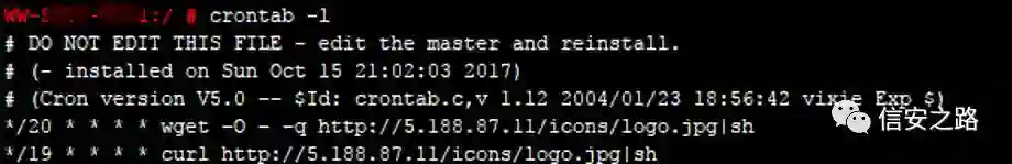 通过排查系统开机启动项、定时任务、服务等,在定时任务里面,发现了恶意脚本,每隔一段时间发起请求下载病毒源,并执行 。