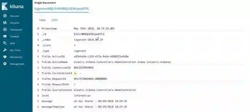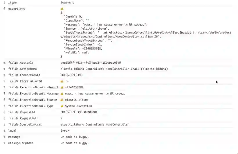 我们来看看使用 Serilog 和 ElasticSearch 默认记录的详细信息。