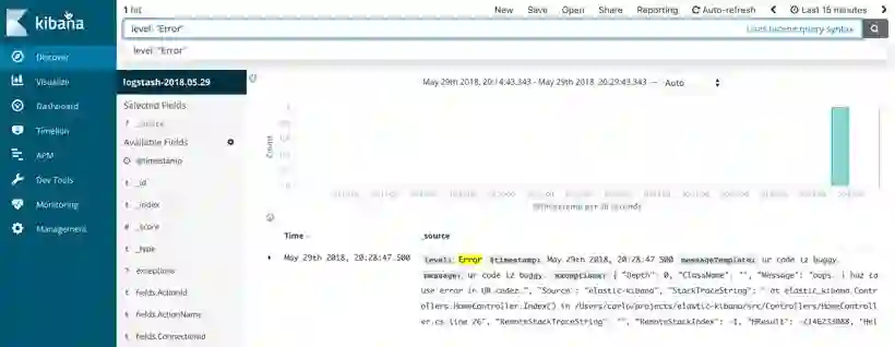 通过组合 Docker,ElasticSearch,Kibana,ASP.NET Core 和 Serilog ,获得了前所未有的便利性和功能,再也没有理由不再将日志记录整合到应用程序中了。