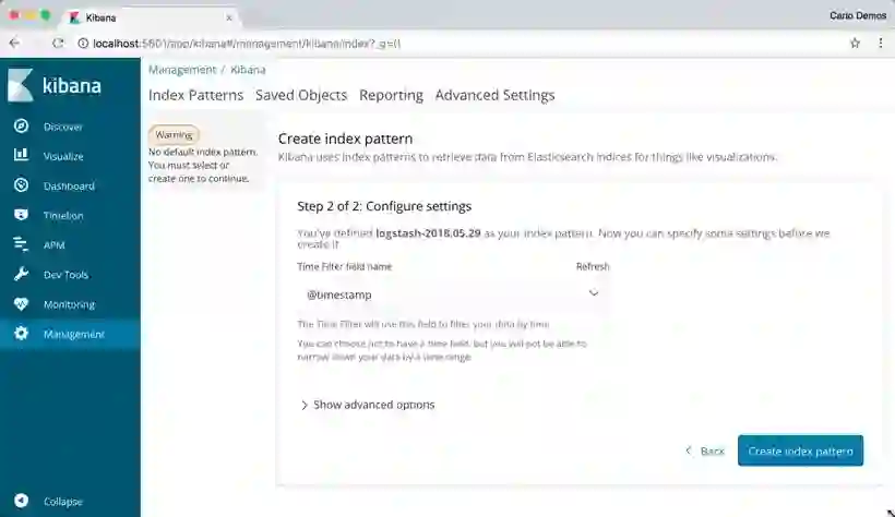 在 Kibana 中创建索引模式来显示数据