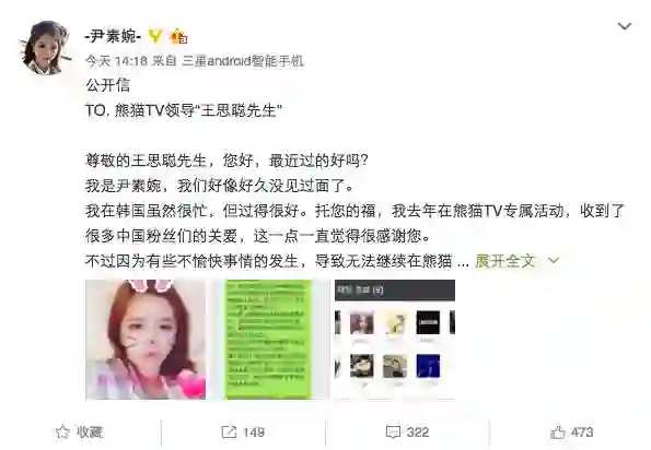 此外,在公开信的图片中,尹素婉公开了一张自己的经纪公司试图与熊猫TV工作人员沟通的图片: