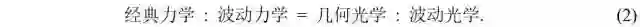 薛仿照从几何光学到波动光学的推广,来从经典力学推广到波动力学。而从几何光学到波动光学,可不是逻辑的推演,其中包含了全新的物理。薛采用上述类比,也就隐含地假设了这种新的物理。所以,与玻恩和约当的对易关系(1)一样,薛定谔方程也是一个基本的原理和假设,而不是逻辑推理的结果。这类比或比喻,需要丰富的想象,可不是单纯的逻辑思维。