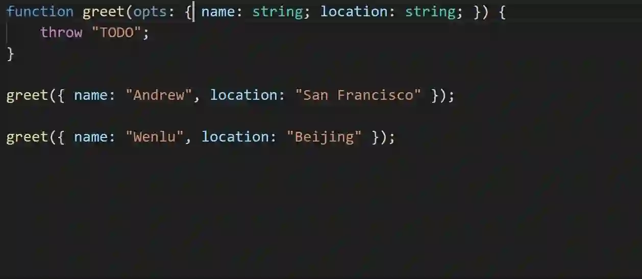 很多时候,我们想要创建一个省略某些属性的对象,TypeScript 内置的 Pick 和 Exclude helper 可以完成类似的功能。例如,如果我们想要定义一个没有 location 属性的 Person,可以编写以下内容:
