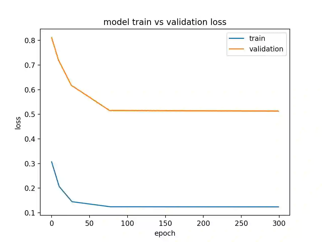 运行这个实例可以创建一个线图,图中训练损失和验证损失出现重合。