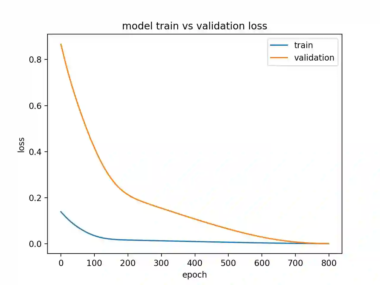 history = model.fit(X, y, epochs=800, validation_data=(valX, valY), shuffle=False)