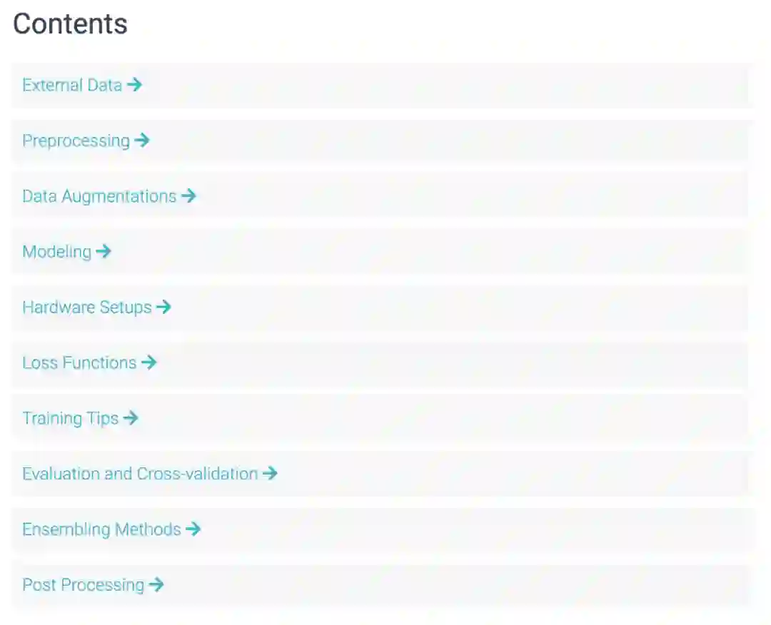 一个经历了 39 场 Kaggle 比赛的团队在 reddit 上发帖表示,他们整理了一份结构化的图像分割技巧列表,涵盖数据增强、建模、损失函数、训练技巧等多个方面,不失为一份可以参考的图像分割技巧资料。