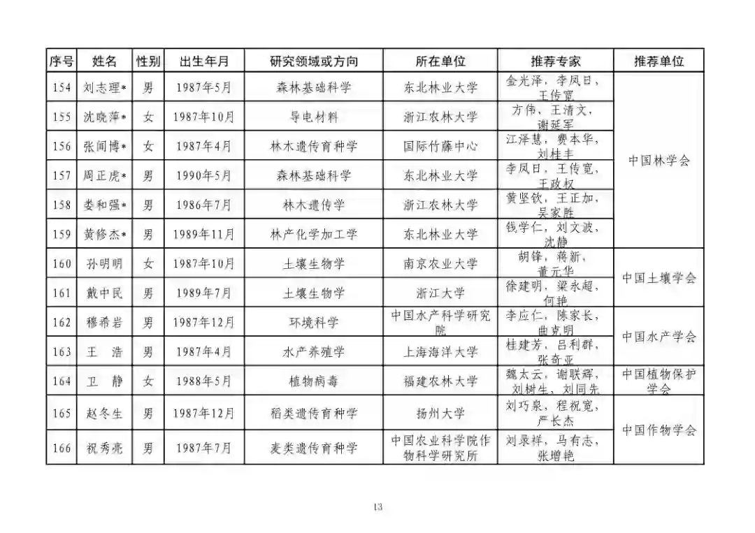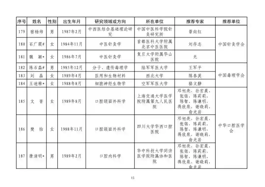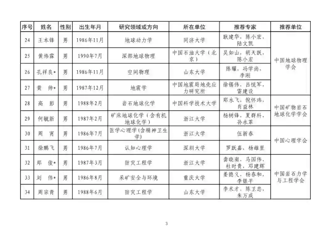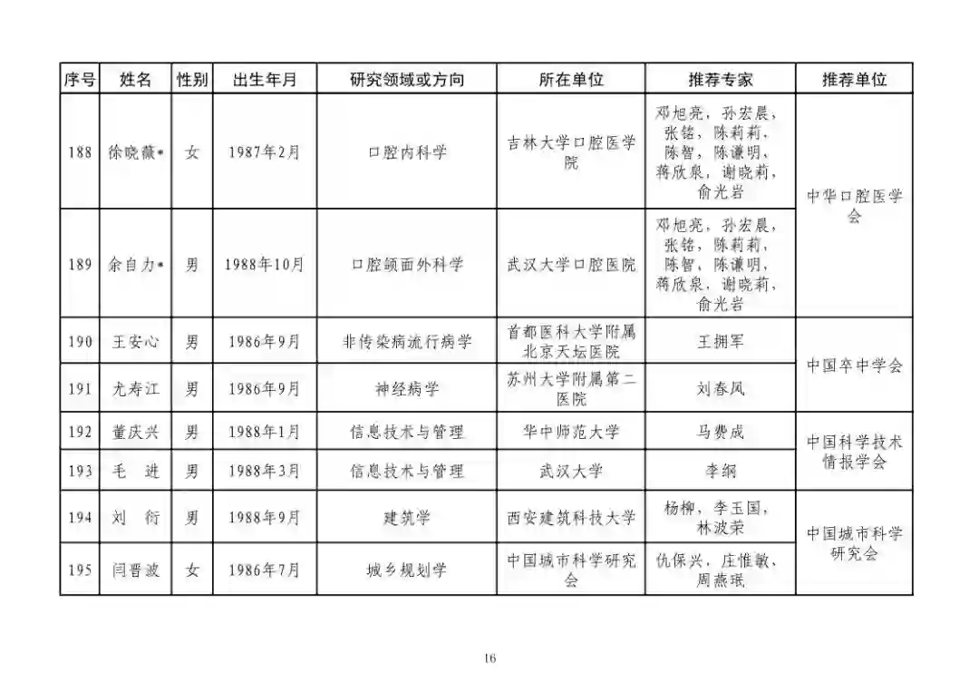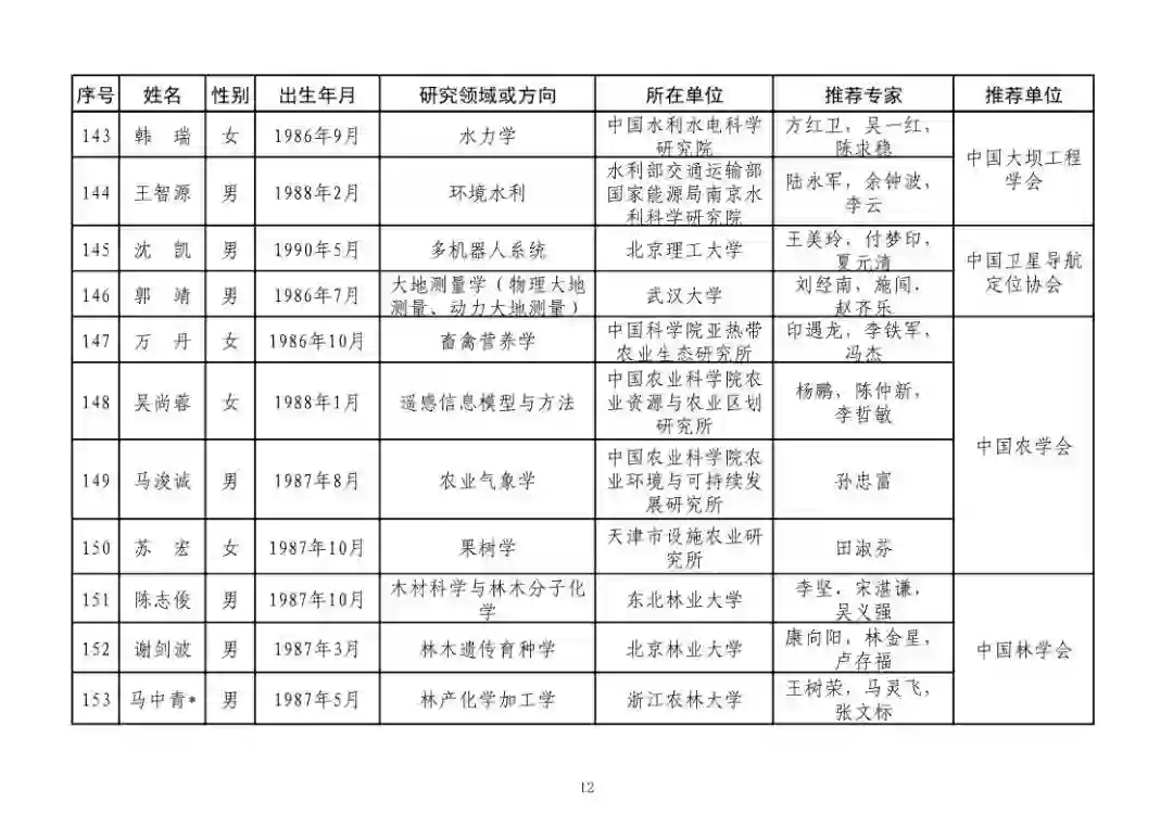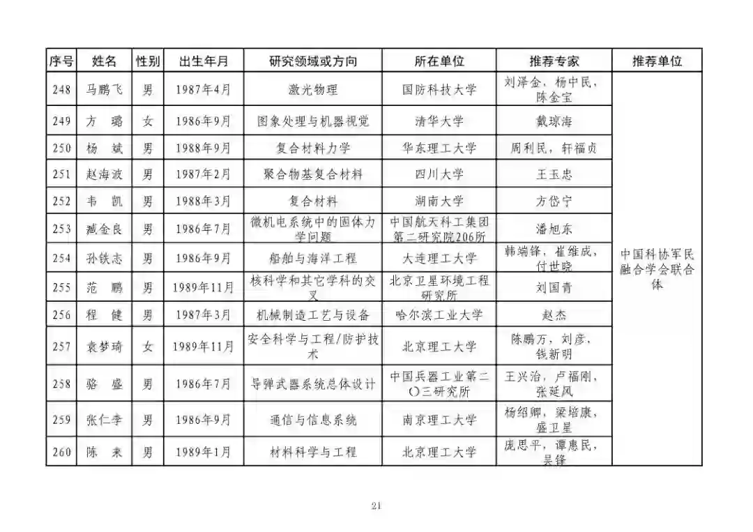 第四届中国科协青年人才托举工程人选名单