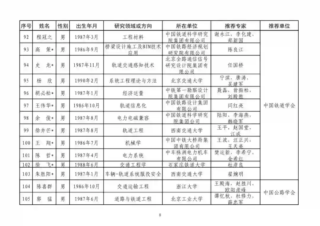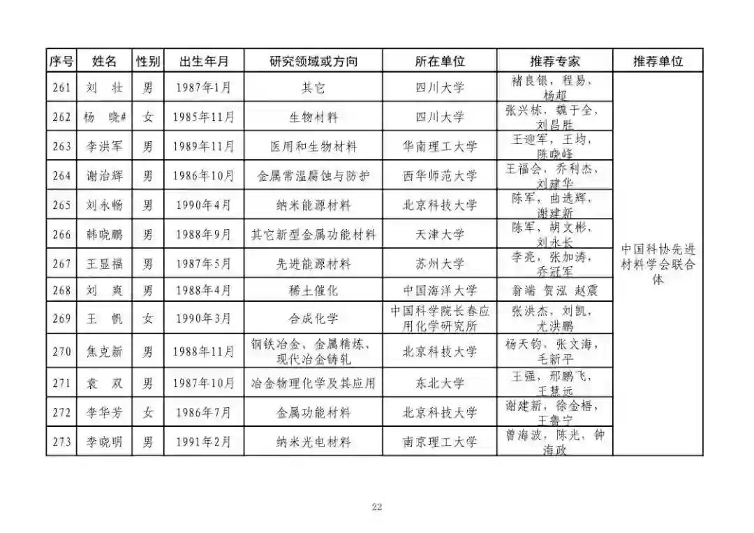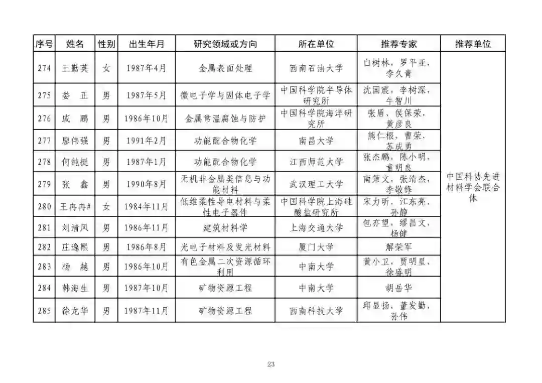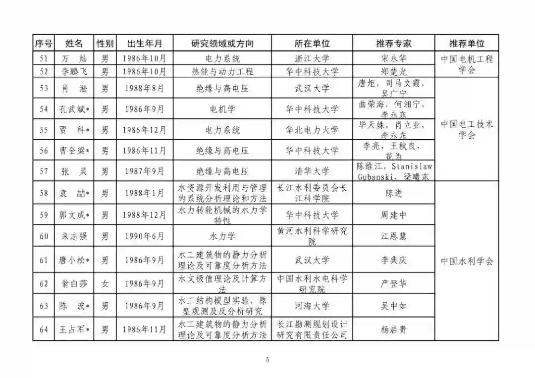 第四届中国科协青年人才托举工程人选名单公示